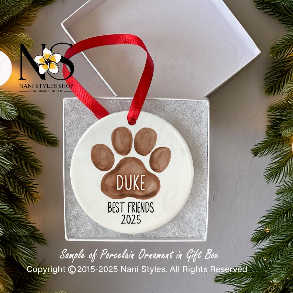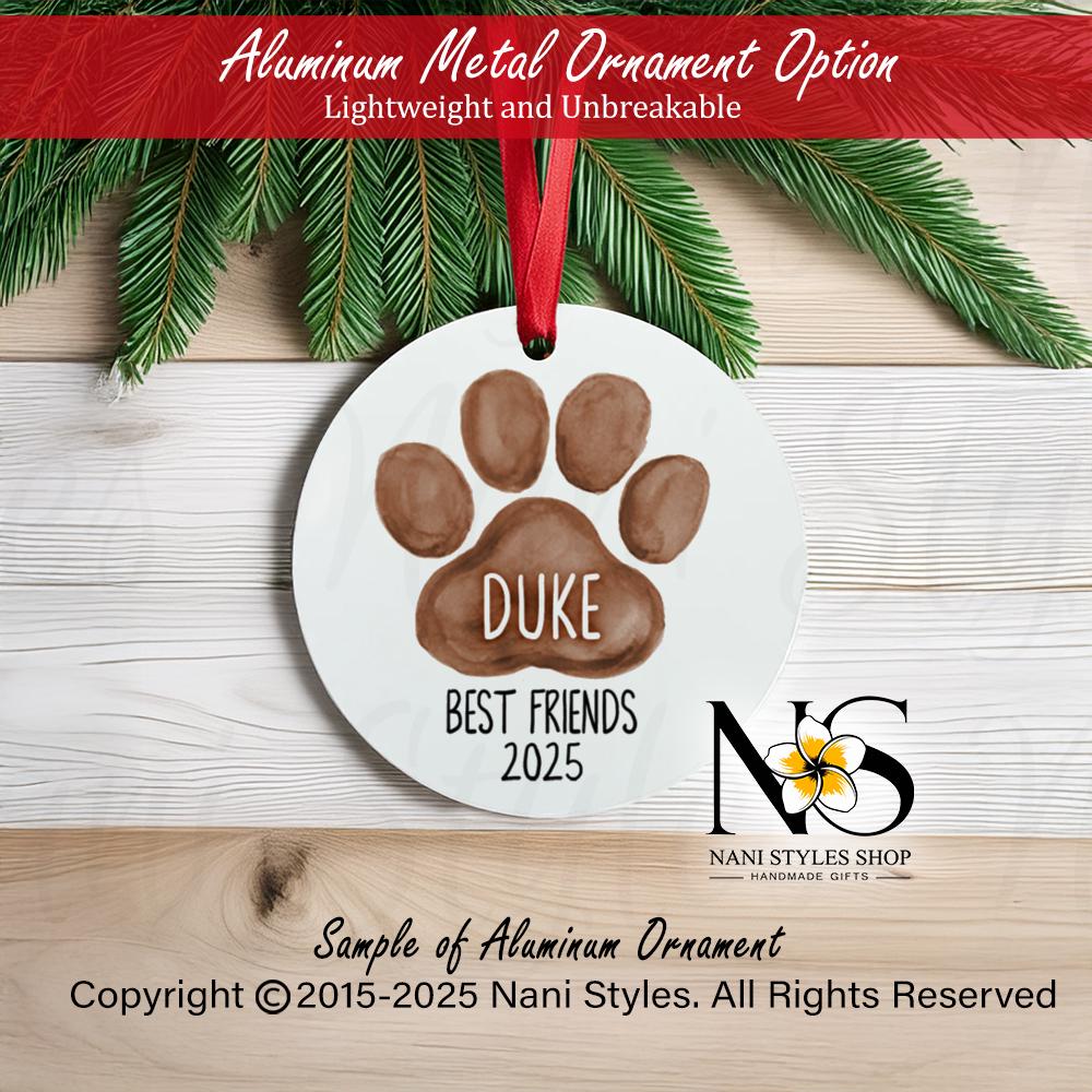 Personalized Dog Paw Christmas Ornament: First Christmas, Porcelain or Aluminum