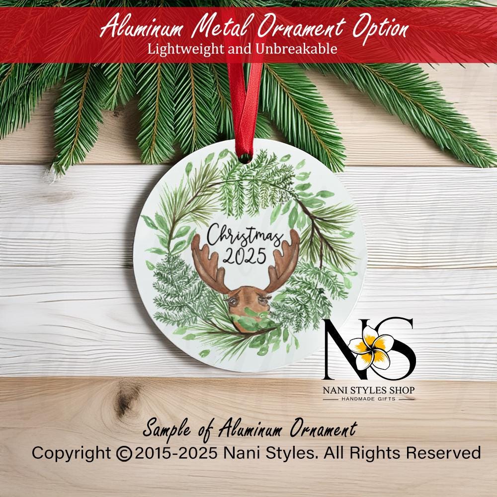 Watercolor Moose Christmas Ornament: Family Gift, Porcelain or Aluminum