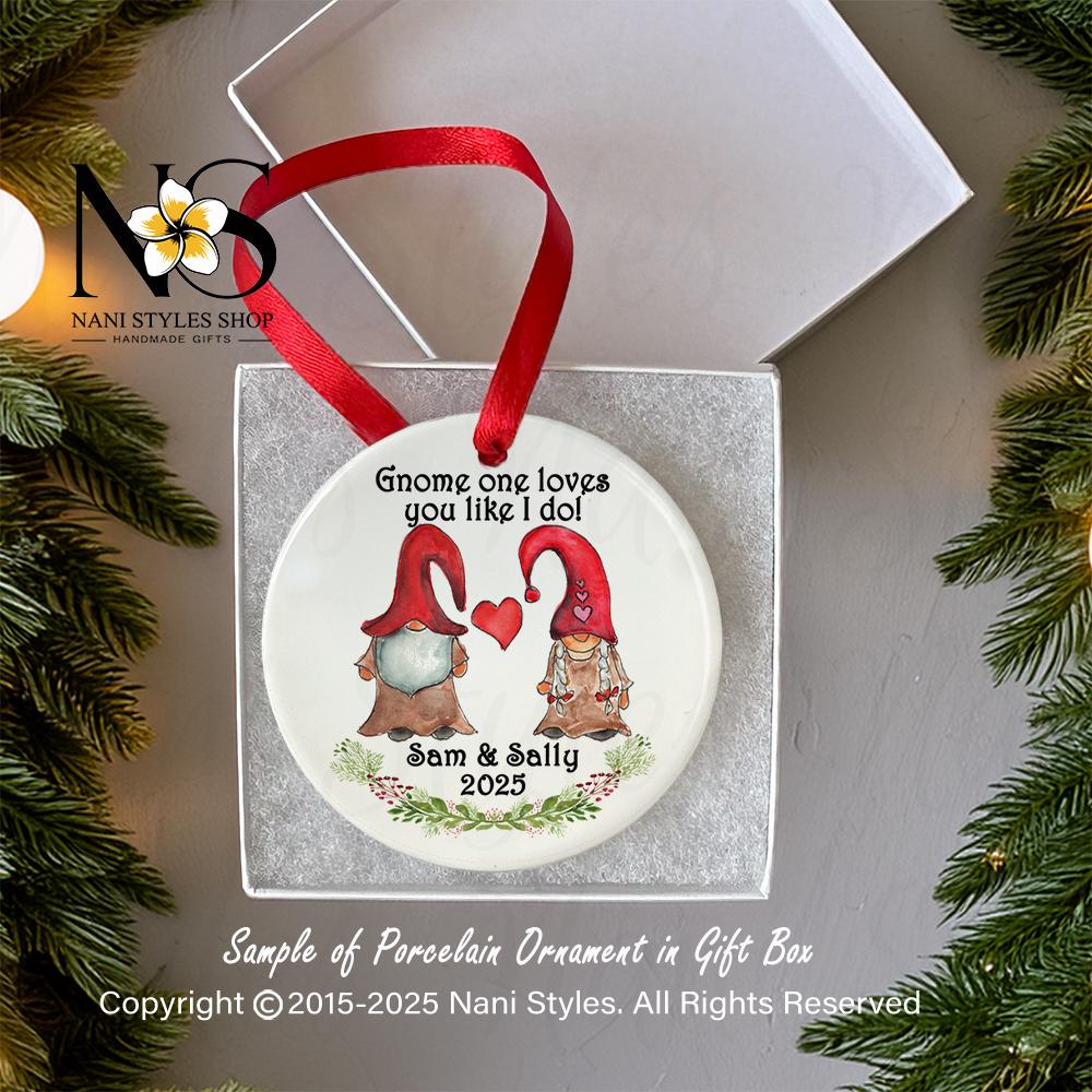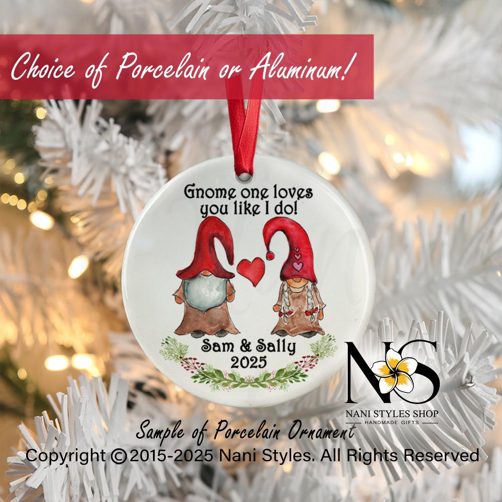 Personalized Gnome Couple Ornament: Watercolor Christmas Tree Decoration