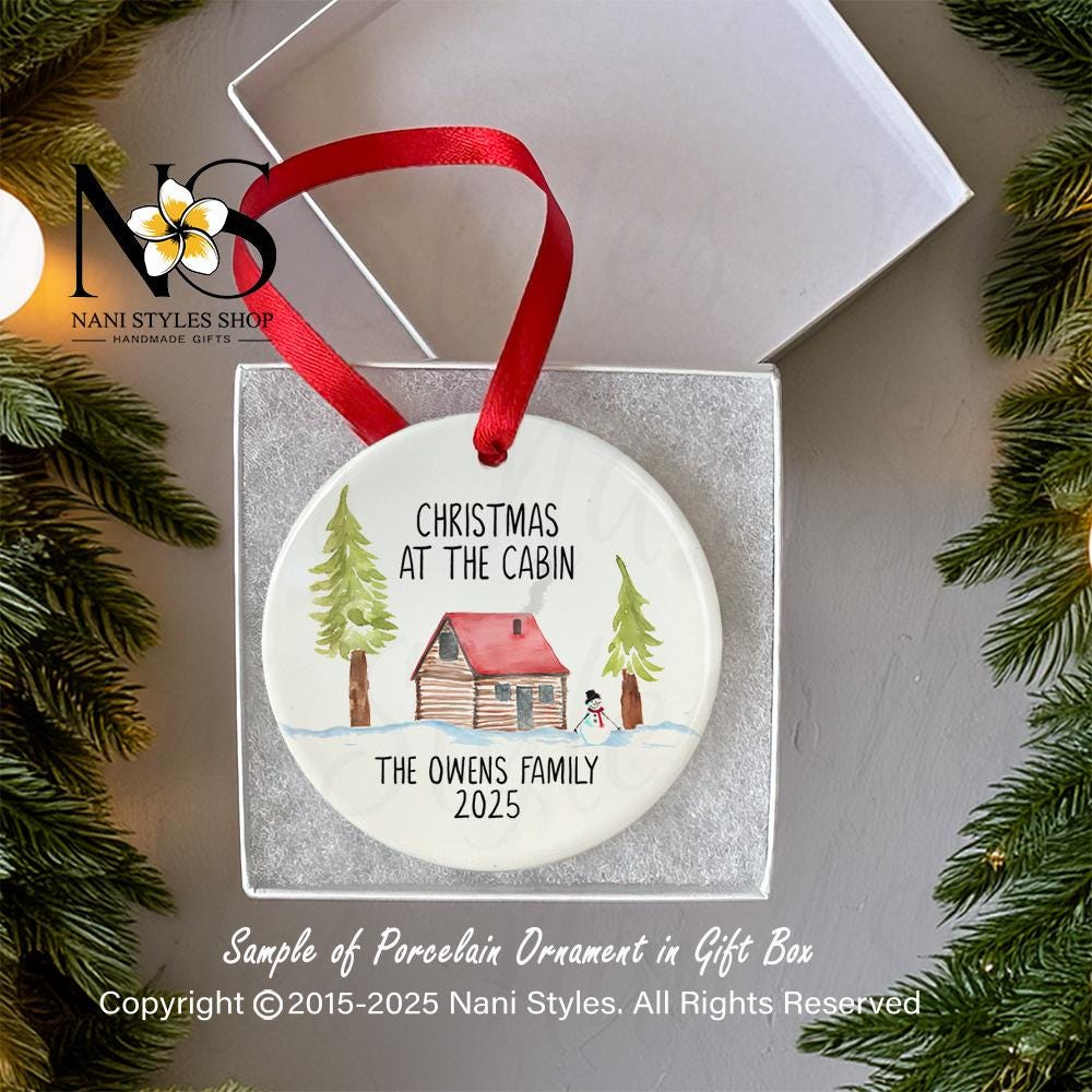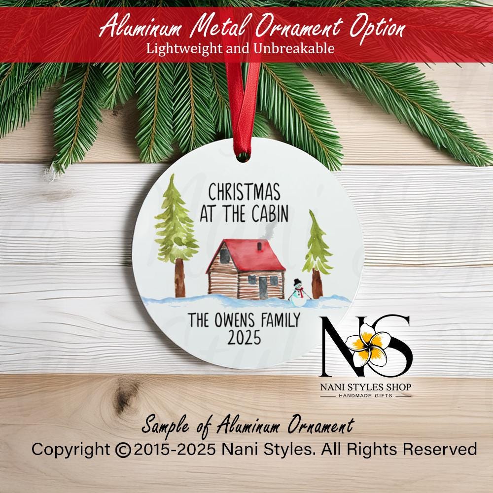 Personalized Watercolor Cabin Ornament – A Cozy Addition to Your Tree! Choose from Porcelain Ornament or Aluminum Ornament. Aluminum is great for those with pets or small children as it will not break.