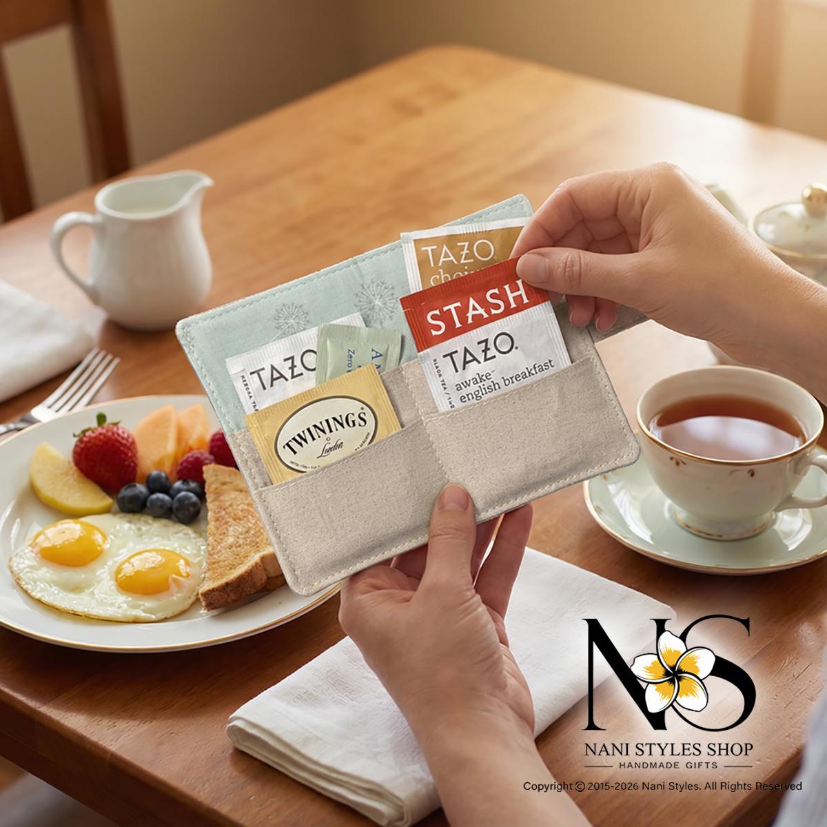 For tea lovers on the go, this charming tea bag wallet offers a stylish and practical way to carry your favorite blends. Crafted from yarn-dyed linen and cotton, this tea bag travel wallet combines durability with a soft, natural feel. Whether you’re looking for a linen gift or a convenient tea bag carrier, this compact accessory keeps your tea bags organized and ready for any adventure.