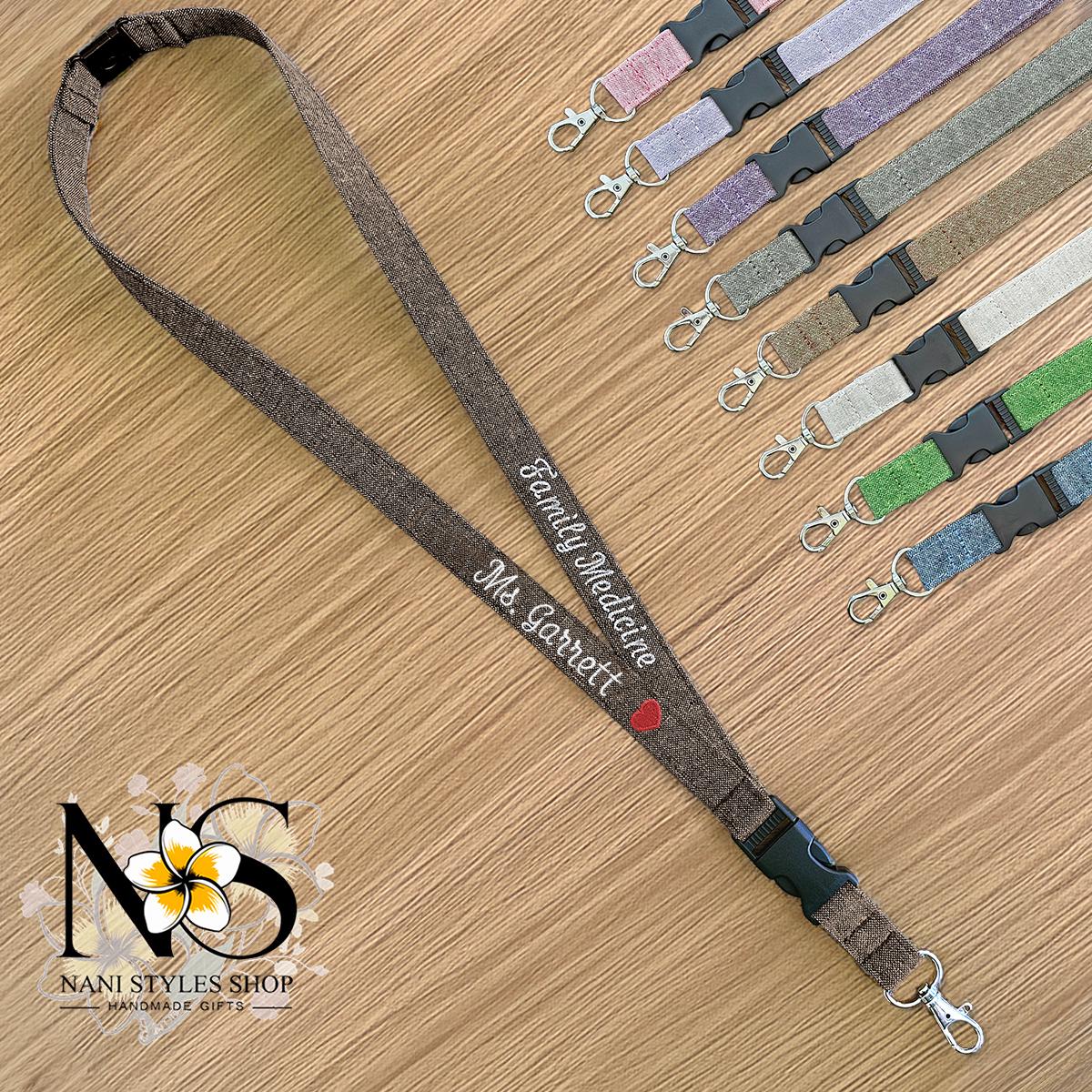 Discover the perfect blend of safety and style with this handmade break away lanyard, thoughtfully crafted from a durable linen cotton fabric. Designed for busy professionals, this safety lanyard offers peace of mind with its secure break-away clip, ideal for teachers, nurses, or anyone needing a reliable name tag lanyard. Personalize your key fob lanyard with your name and favorite icon to make it uniquely yours.