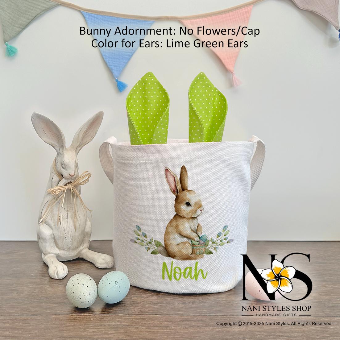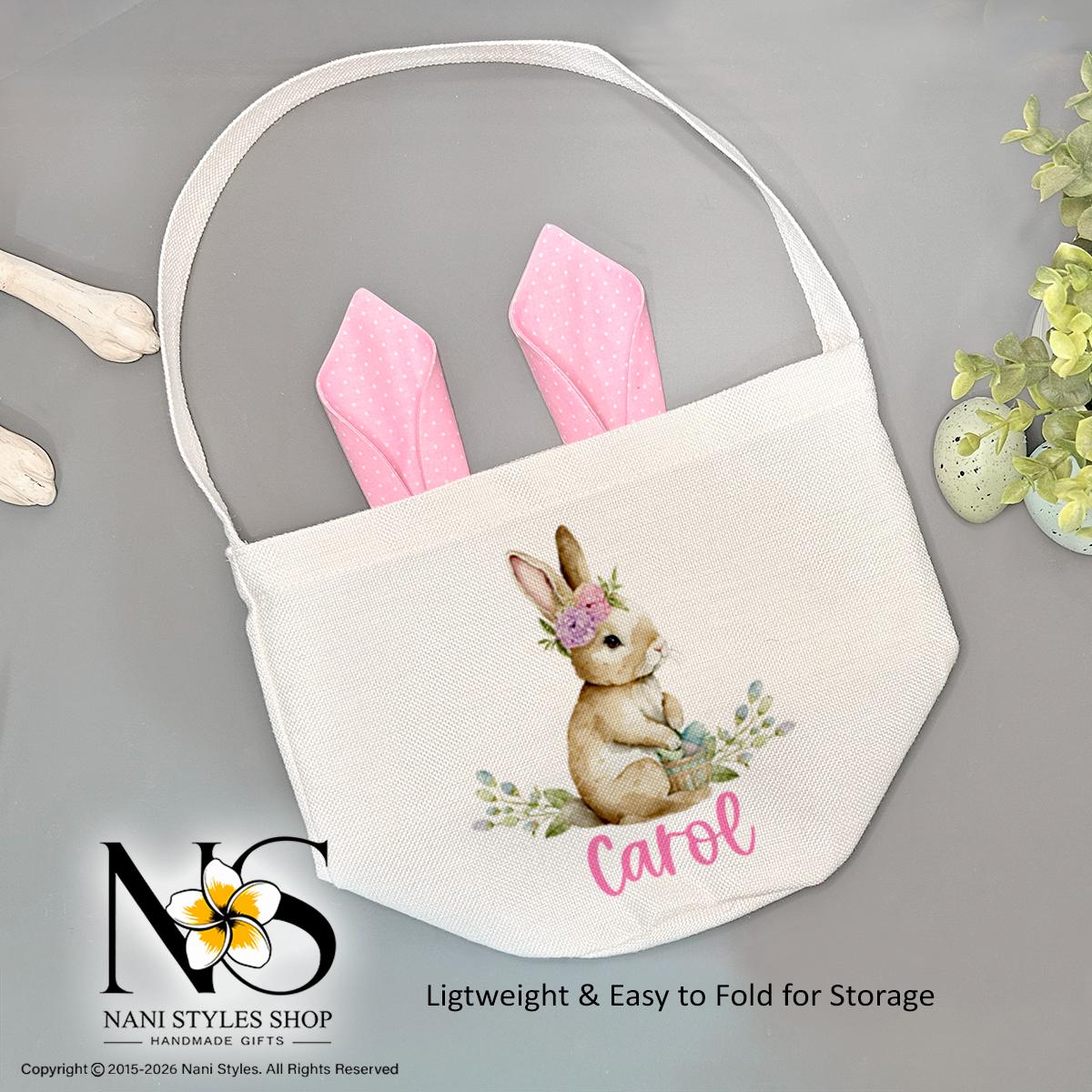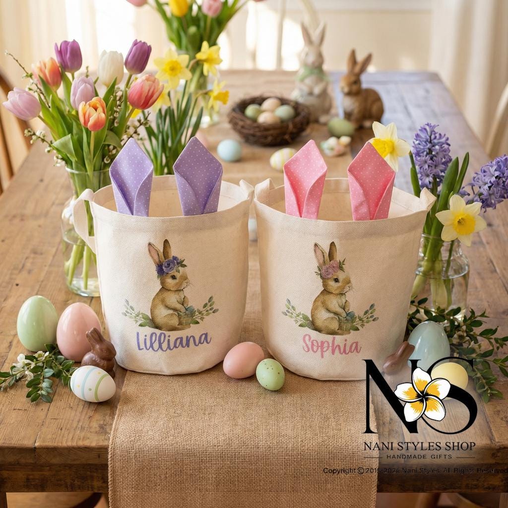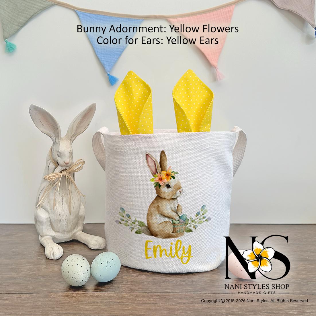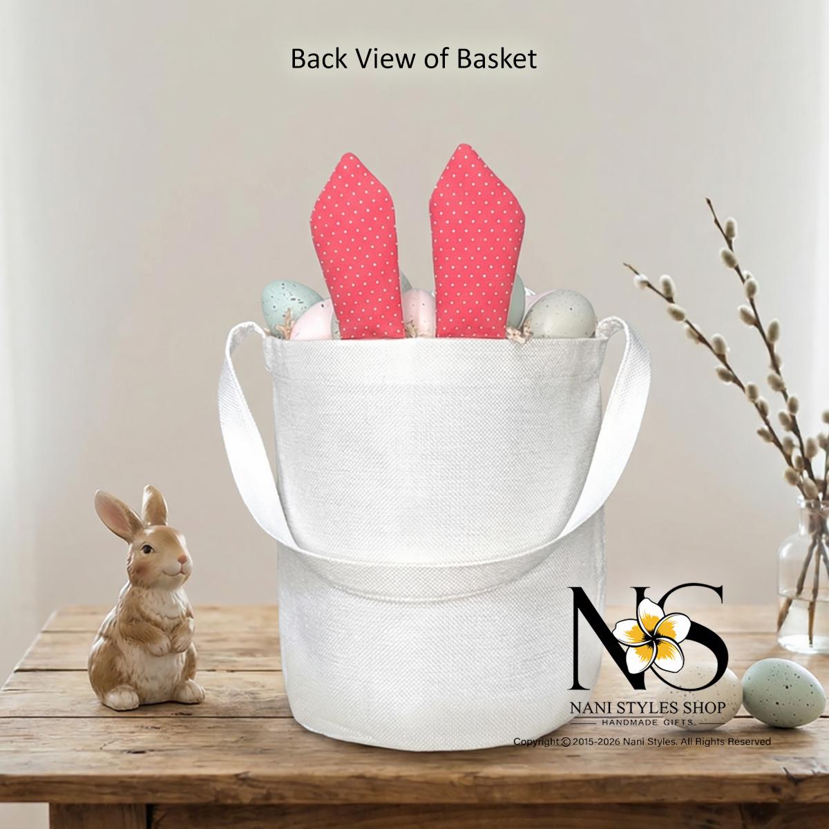 Easter celebrations become even more magical with this playful bunny basket tote, designed to delight both children and families alike. Featuring colorful cotton dotted ears and a personalized embroidered monogram, this reusable canvas tote is a charming addition to any holiday egg hunt. Handmade with care, adorable kids basket design that’s perfect for storing treats and small toys.