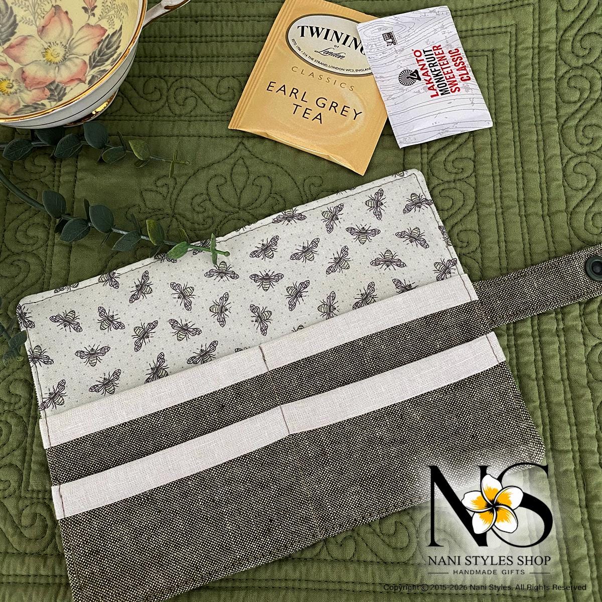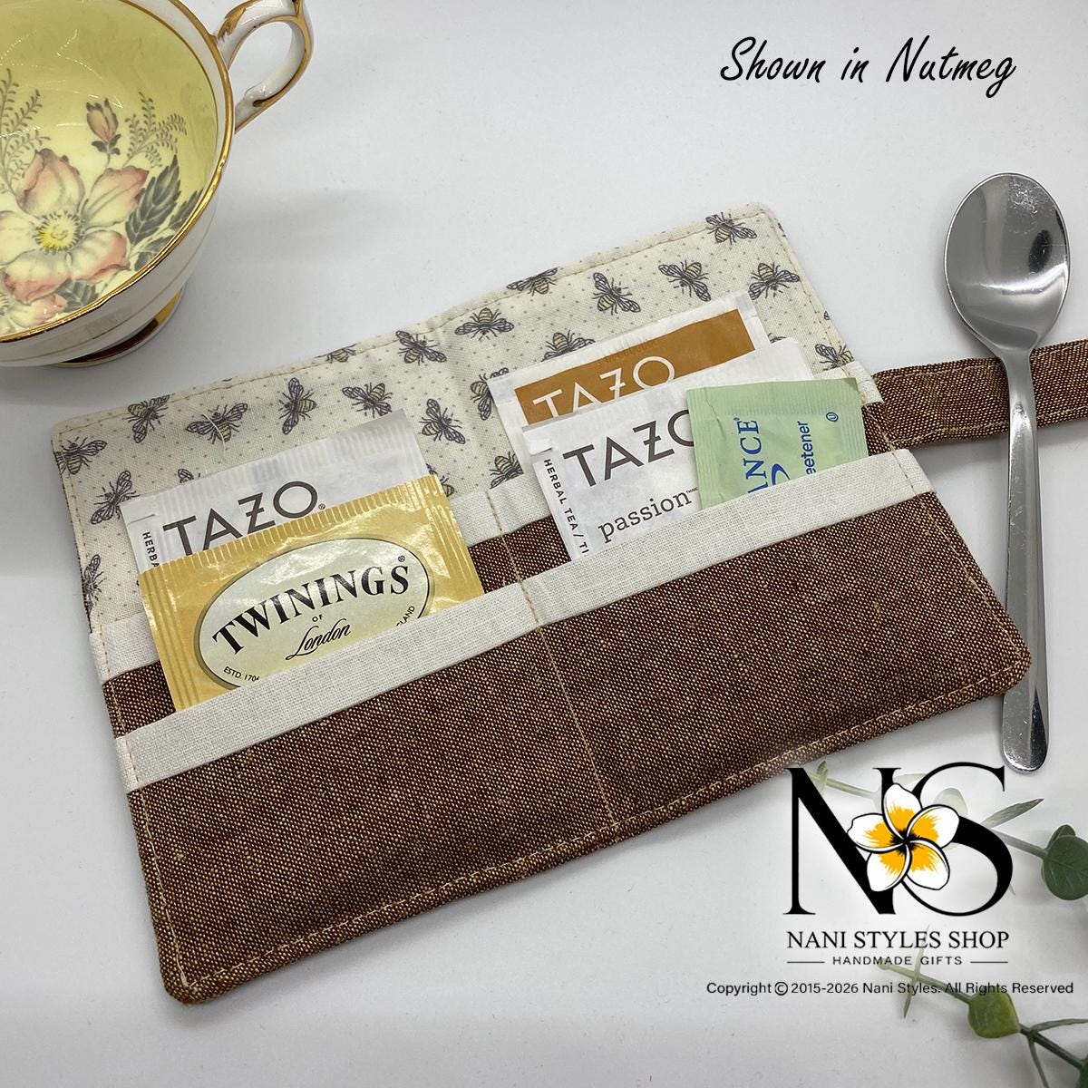 Don’t ever be without your favorite tea! Perfect for a gift for a tea lover, co-worker gift, mother's day gift or just for yourself. My Tea Bag Wallet is designed to carry four tea bags but can carry up to six and even a couple of sweeteners or sugar packs. Just depends on the size of the packages. It is top stitched all around to give it more strength in the seams and a beautiful finished look.